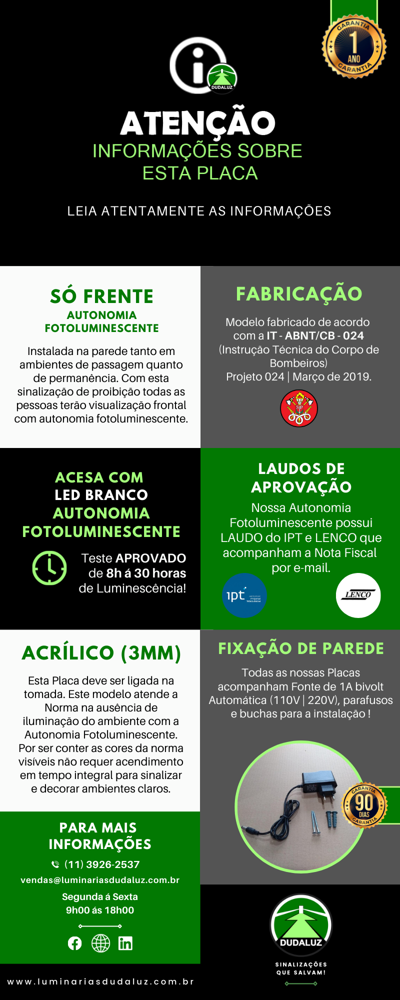 PLACA COM LED | AUTONOMIA FOTOLUMINESCENTE