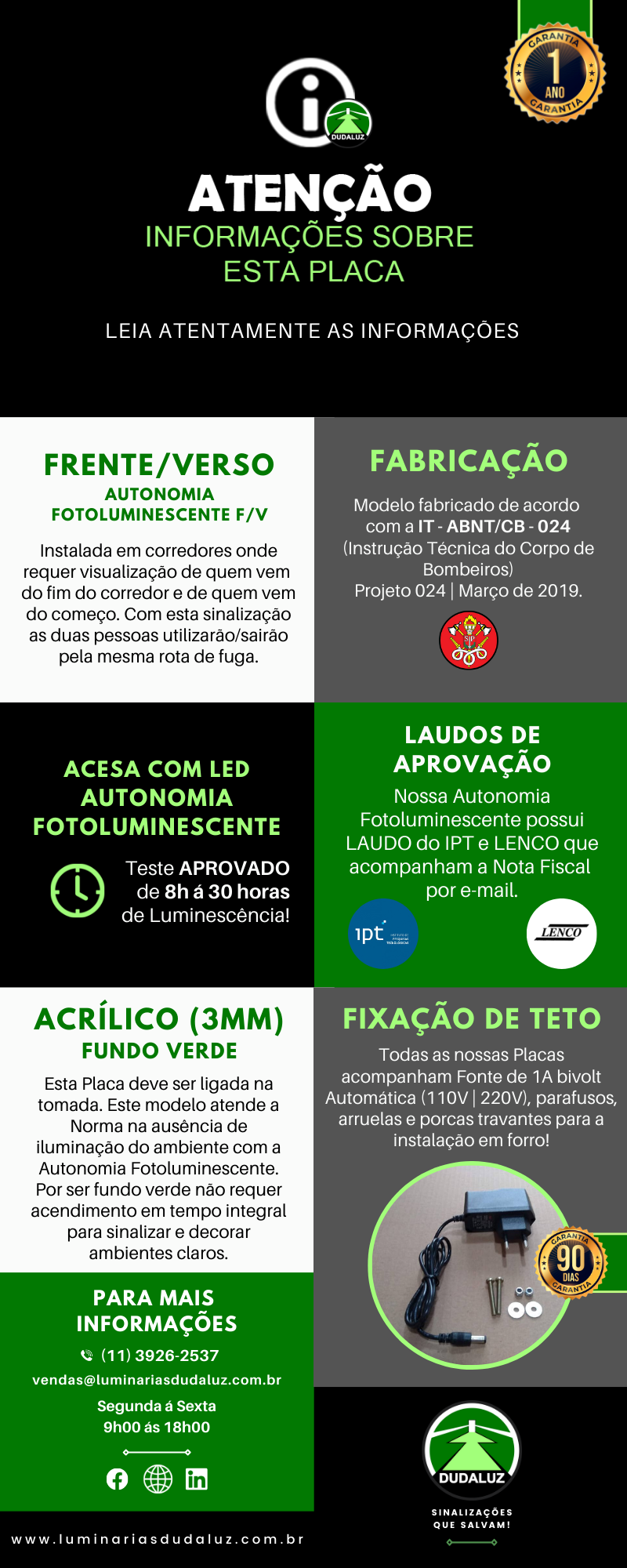 PLACA COM LED | AUTONOMIA FOTOLUMINESCENTE